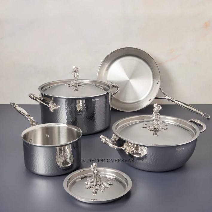 ชุดมิกกี้เม้าส์เคลือบทองมีฝาปิดด้านบนและที่จับสำหรับเครื่องครัวทองแดง ruffoni ถ้วยเสิร์ฟอาหารโต๊ะกลาง