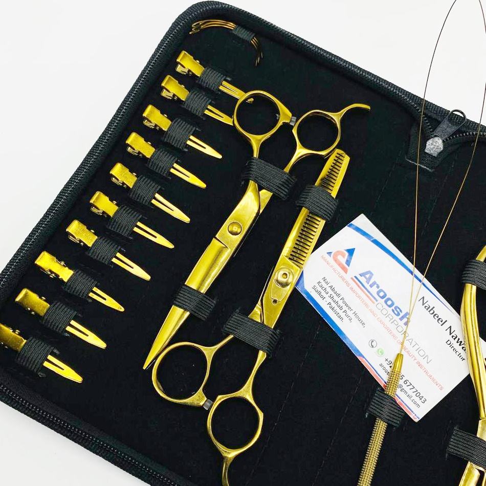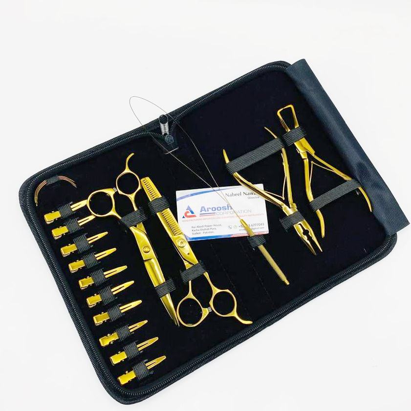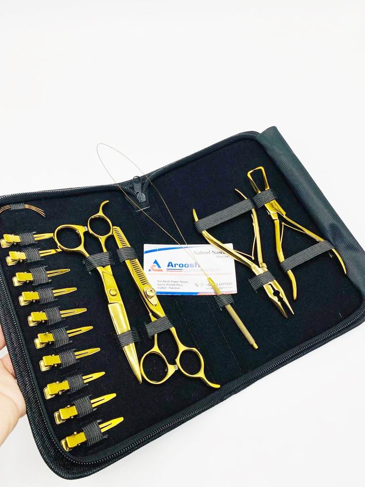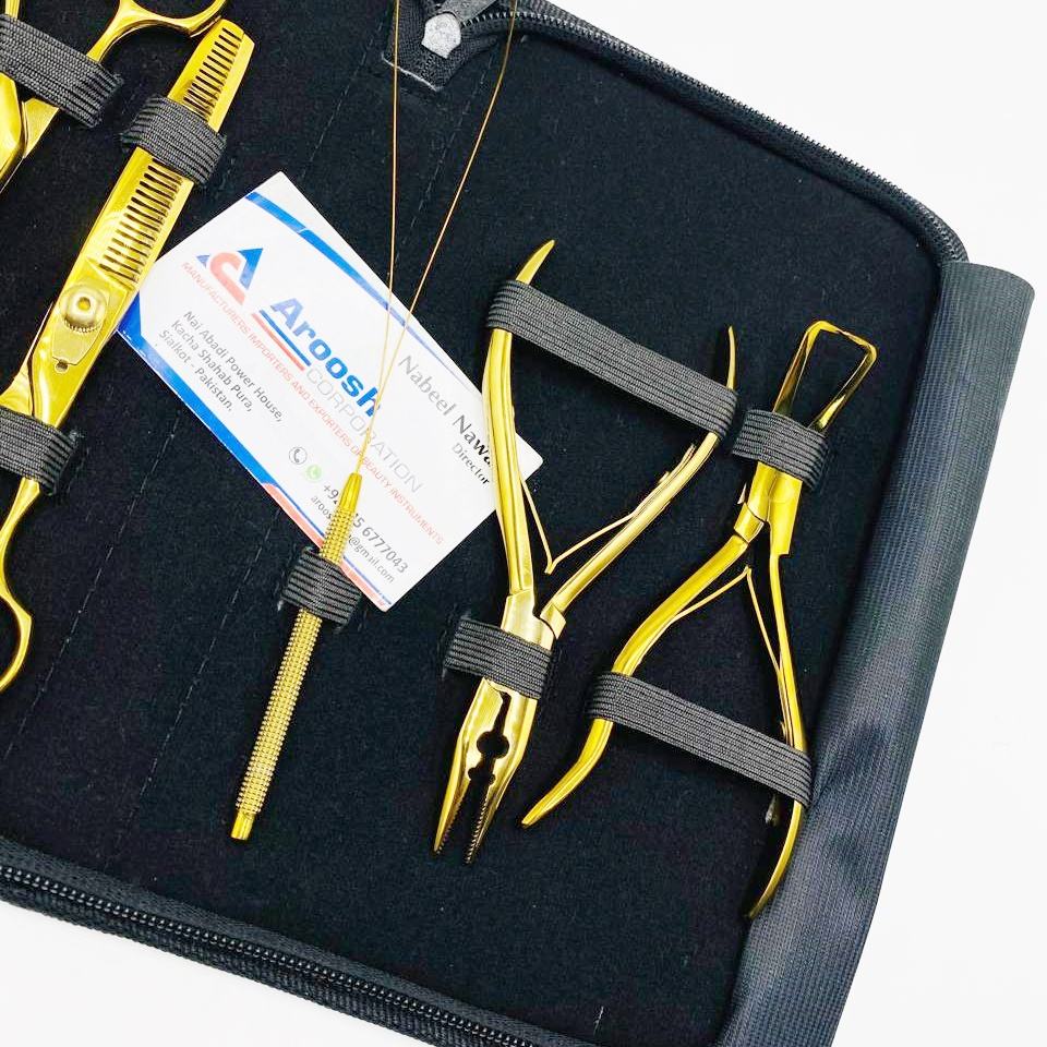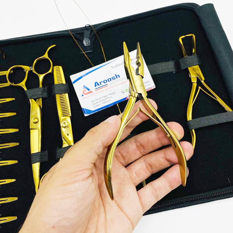 Gold Plated Micro Bead Hair Extensions Pliers Kit Stainless Steel Barber Hair Cutting Scissor Pulling Loop for Human Hair