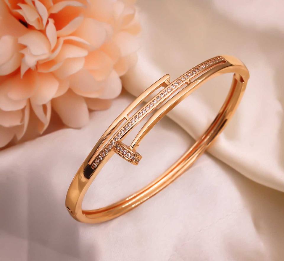 กำไลข้อมือแบบเปิดทันสมัยชุบทองประดับด้วยหินคิวบิกเซอร์โคเนีย (AD) คุณภาพสูง ปรับขนาดได้
