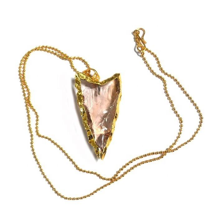 สร้อยคอหัวลูกศรสีชมพูธรรมชาติชุบทองพร้อมรูปมงกุฎอาเกตและลวดลาย