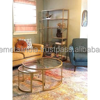 โต๊ะทำจากโลหะและแก้วทรงแปดเหลี่ยมชุบทองสำหรับตกแต่งห้องนั่งเล่นฐานแท่งเหล็กทำจากแก้วเฟอร์นิเจอร์โลหะหรูหรา