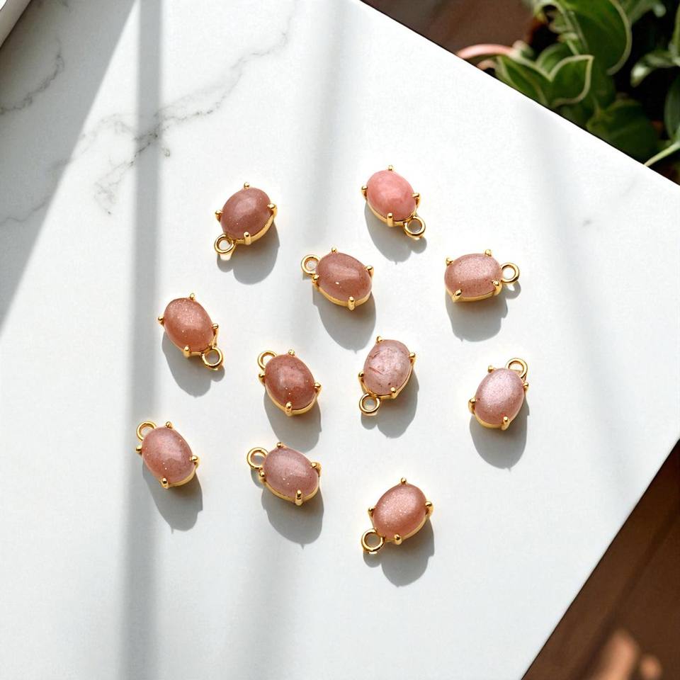 เครื่องประดับรูปวงรีและควอตซ์ทรงสตรอเบอรี่ชุบทองมีสเน่ห์