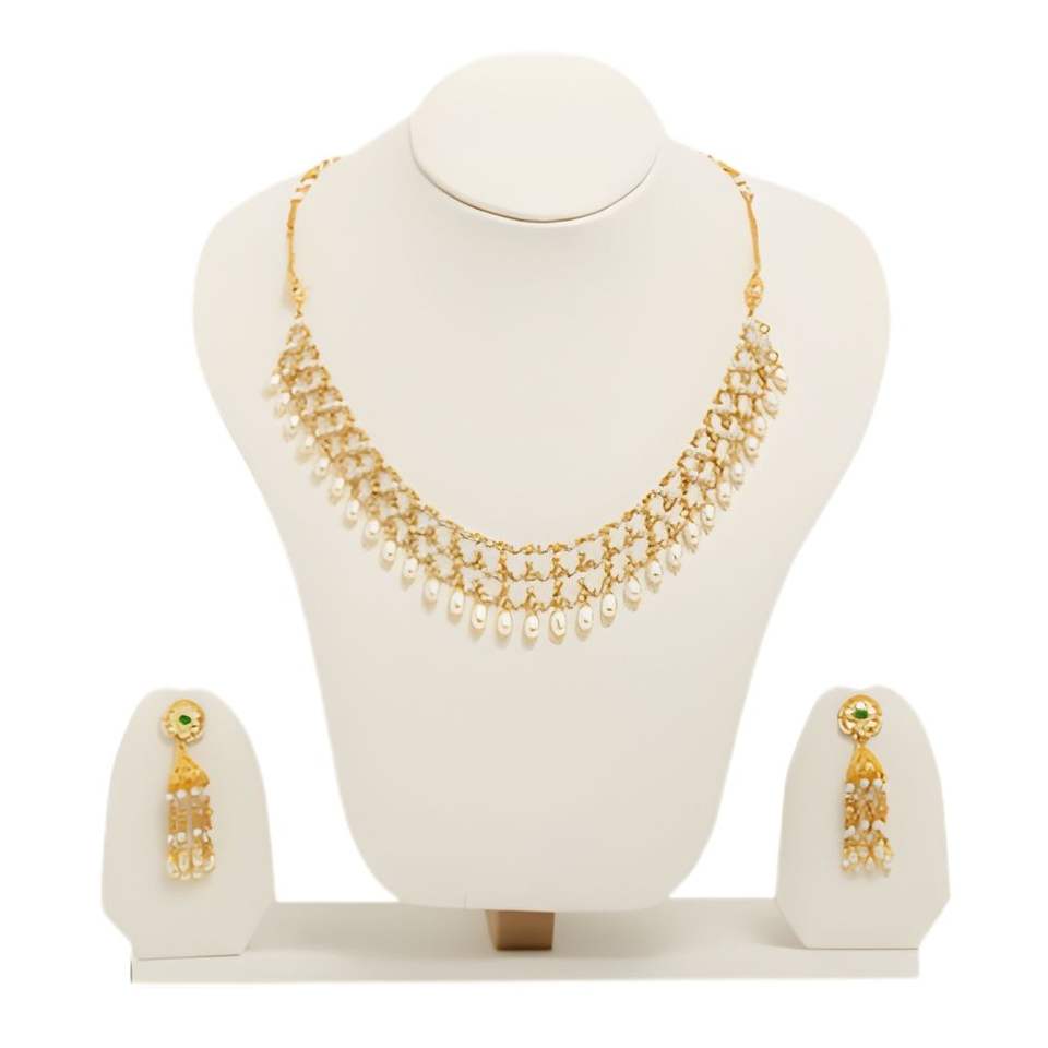 ชุดสร้อยคอไข่มุกชุบทองพร้อมต่างหูเข้าชุดสำหรับผู้หญิง คอลเลคชั่นเครื่องประดับงานแต่งงานแบบดั้งเดิม งานเทศกาล และงานพิธีแบบชาติพันธุ์