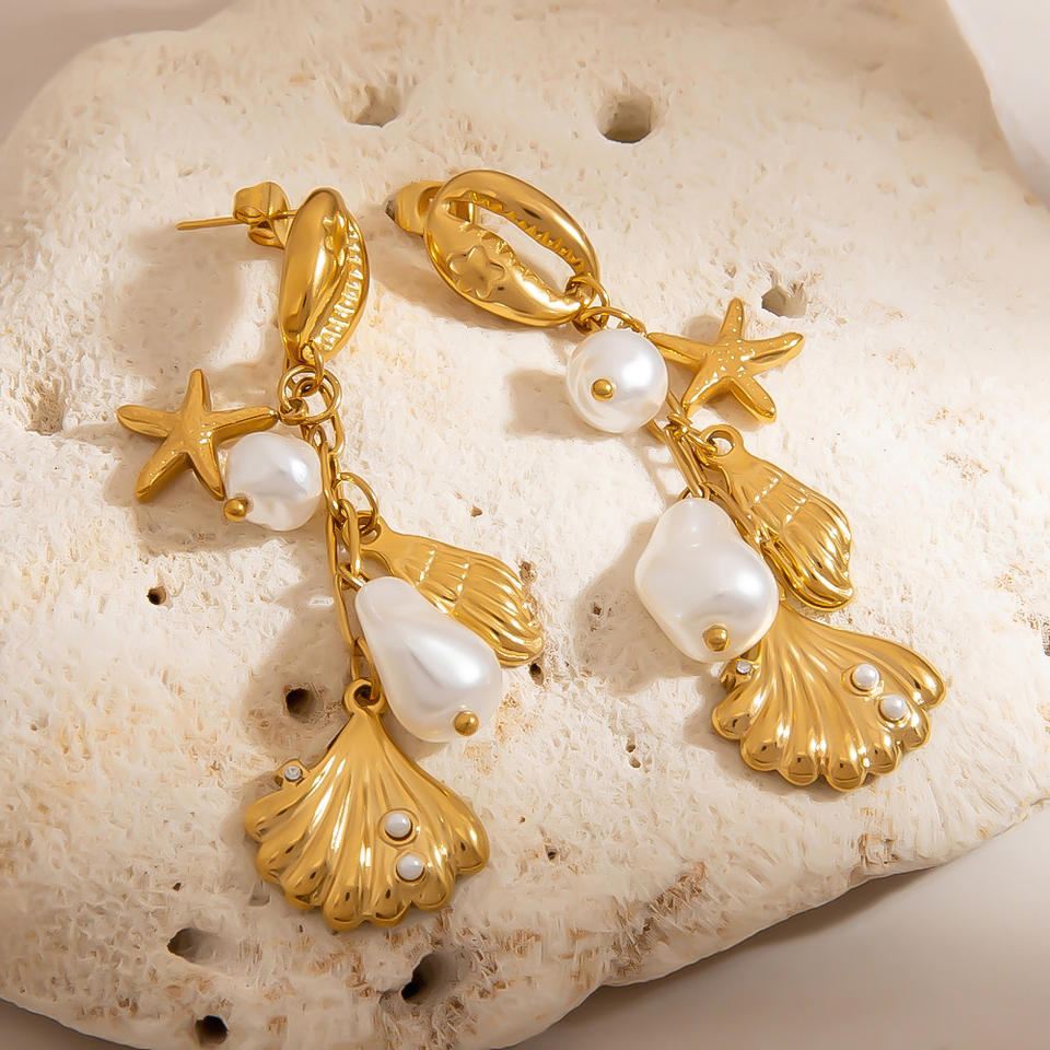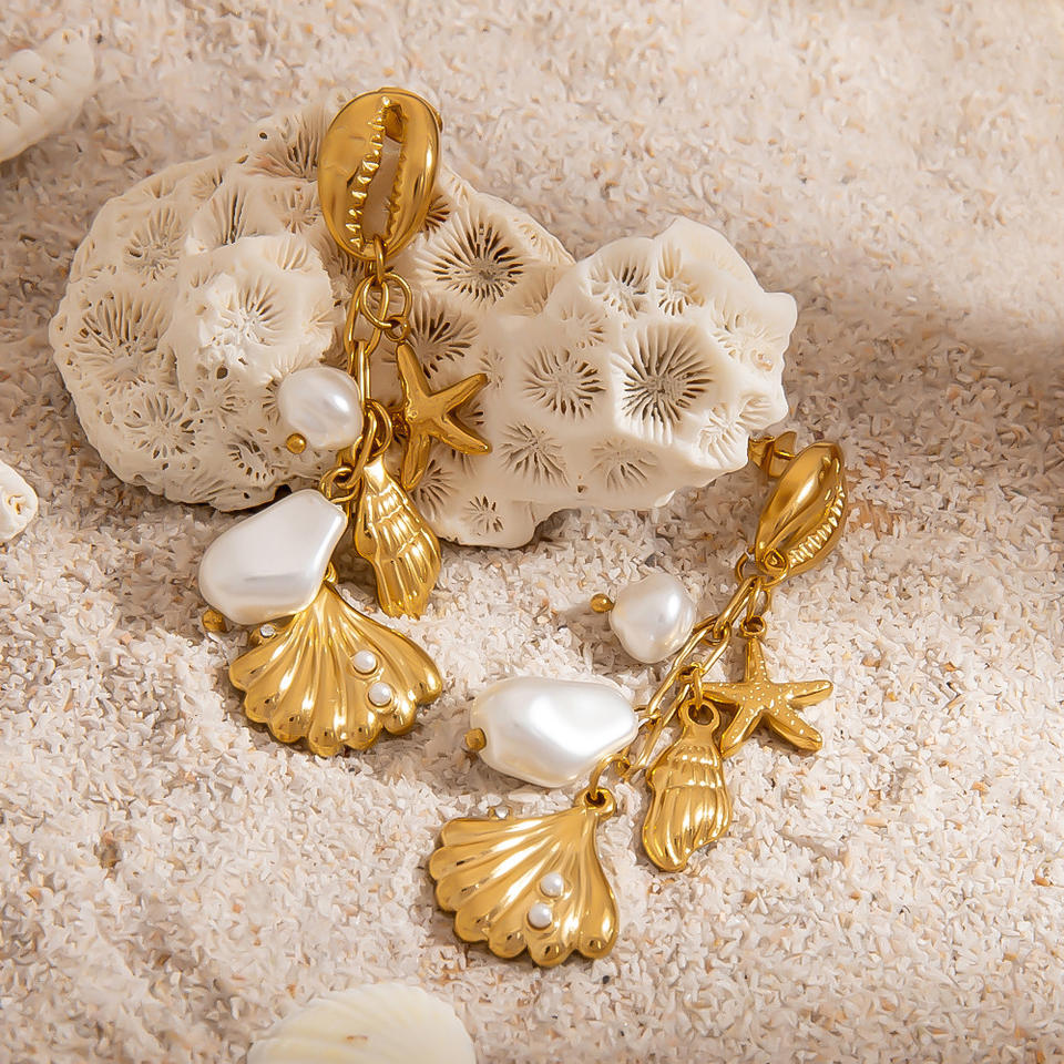 ต่างหูไข่มุกเคลือบทองพร้อมจี้รูปปลาดาวสวมใส่ได้ทุกวัน