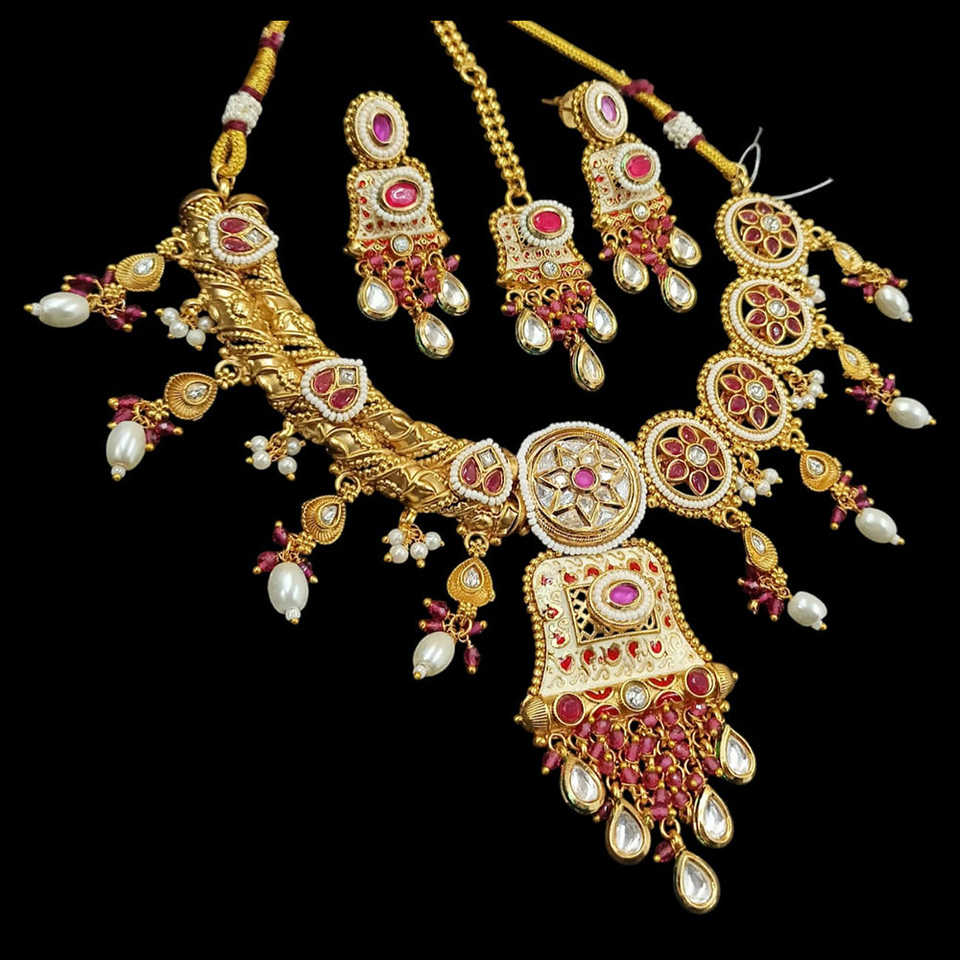 ชุดสร้อยคอหิน pota ชุบทองและไข่มุก meenakari ชุดเครื่องประดับ13111151PK ดี