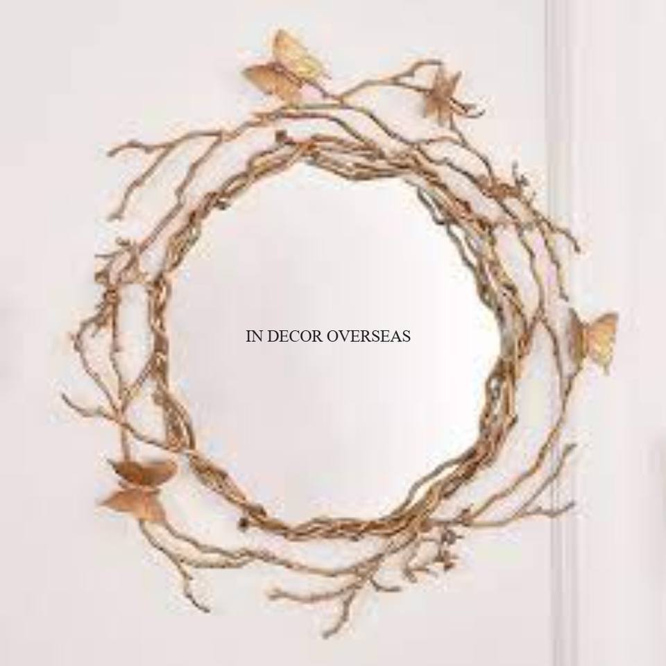 กระจกโลหะตกแต่งผนังทรงกลมกรอบผีเสื้อดีไซน์สวยเคลือบทองคุณภาพระดับพรีเมี่ยม