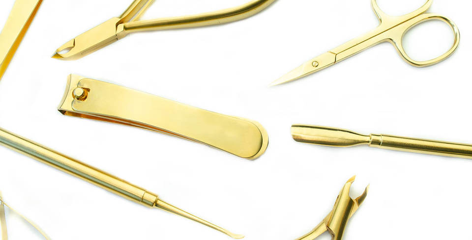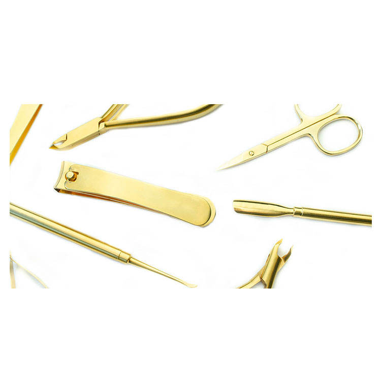 ชุดอุปกรณ์ทำเล็บมืออาชีพเคลือบทองสำหรับอุตสาหกรรมความงาม กรรไกรตัดเล็บ
