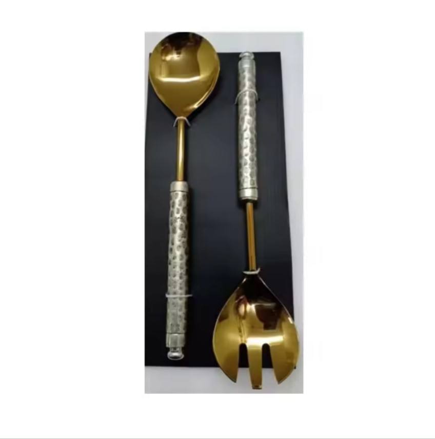 ชุดช้อนส้อมเสิร์ฟสลัดชุบทองเครื่องใช้บนโต๊ะอาหารโลหะหรูหราสำหรับเสิร์ฟบนโต๊ะดีไซน์ใหม่พร้อมกล่องของขวัญสุดหรู