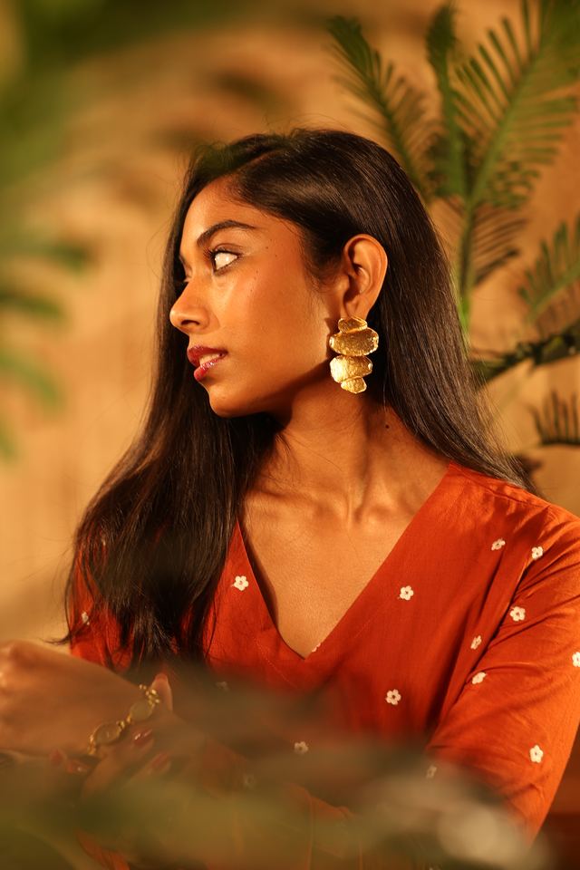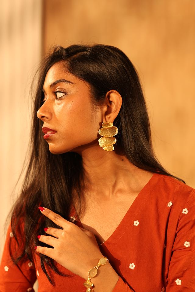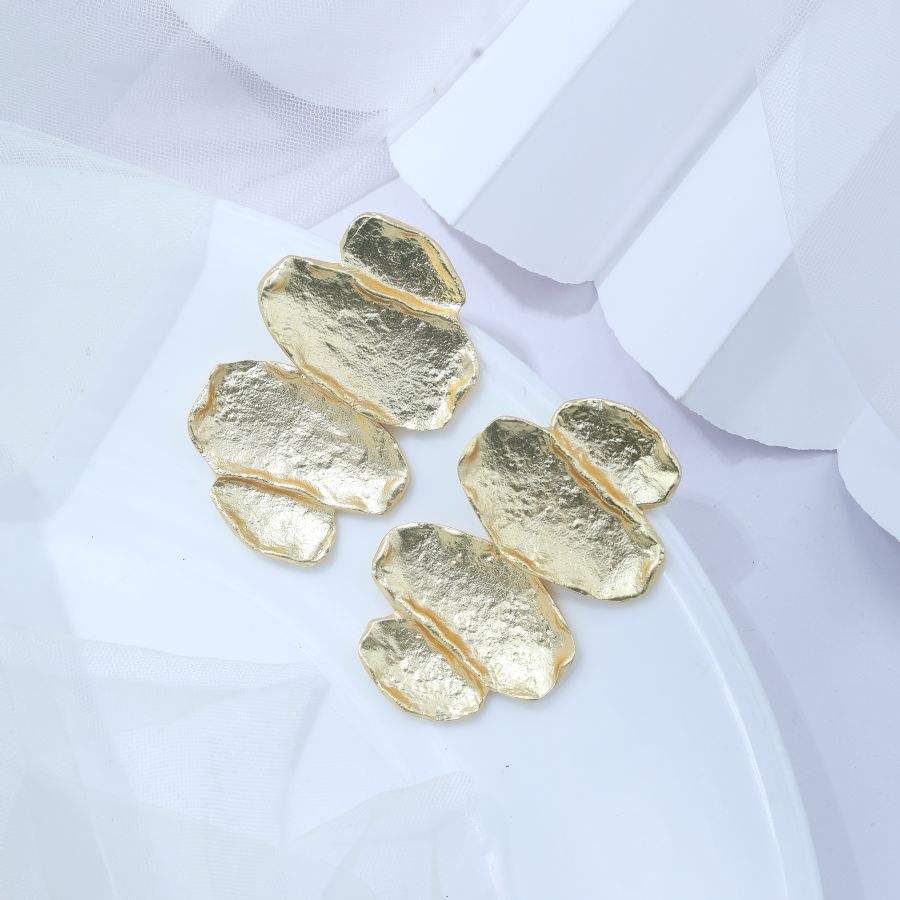 ต่างหูทรงประติมากรรมชุบทอง | ต่างหูทองเหลืองดีไซน์เนอร์งานแฮนด์เมดสำหรับผู้หญิง