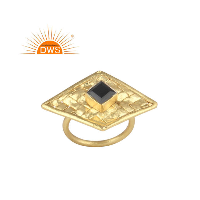 แหวนเงินแท้ 925 ชุบทอง ประดับพลอยออนิกซ์สีดำทรงสี่เหลี่ยมผืนผ้า สำหรับงานปาร์ตี้ เครื่องประดับสำหรับทุกเพศ