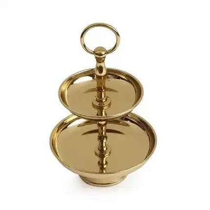 ที่วางเค้กสแตนเลส2ชั้นเคลือบทองสำหรับงานแต่งงานงานเลี้ยงวันเกิดอุปกรณ์ทำเค้กและที่ตั้งโชว์ทำด้วยมือ