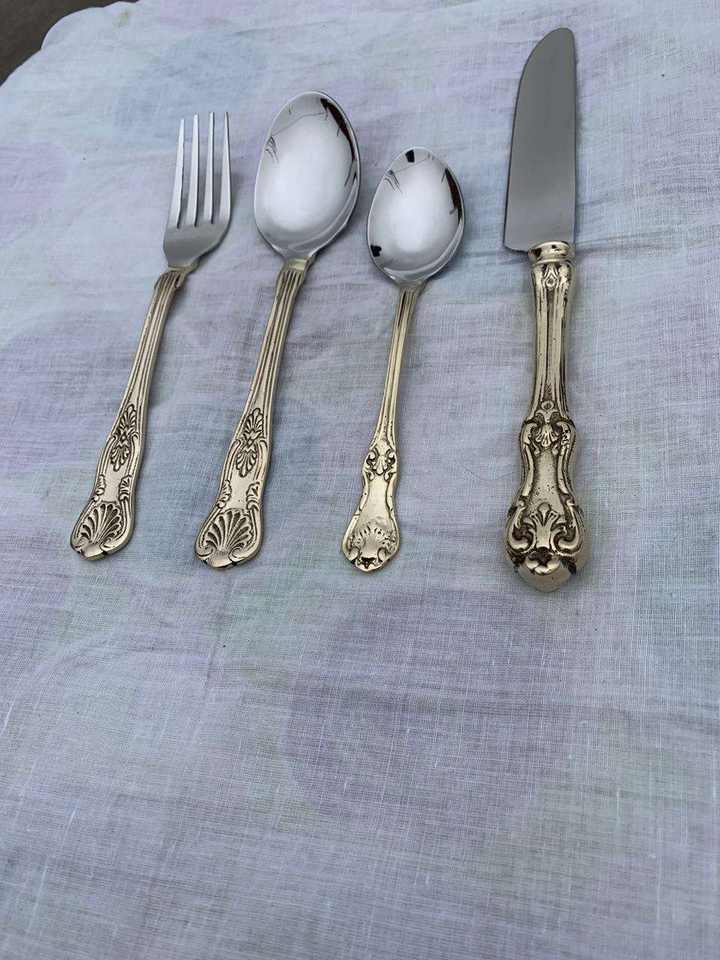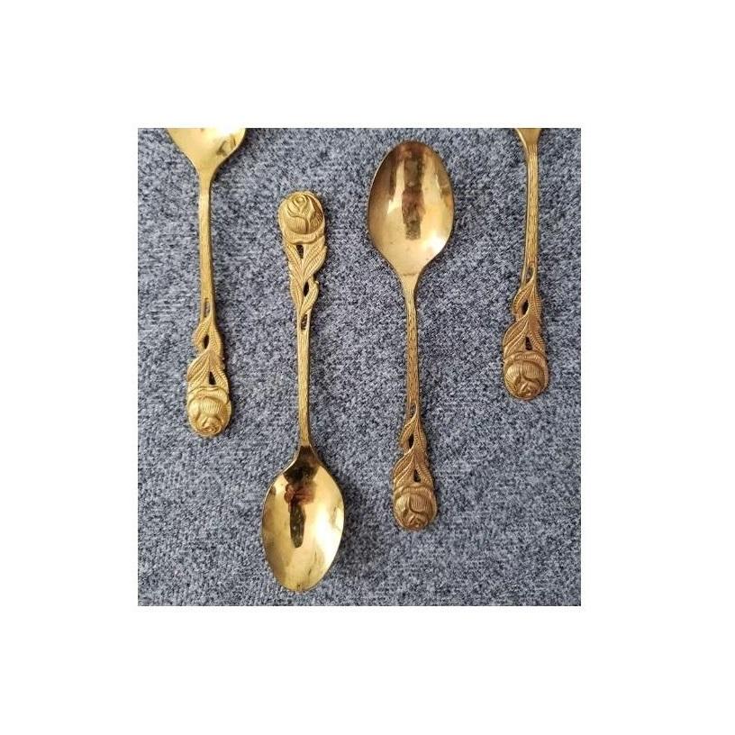 ชุดเครื่องใช้บนโต๊ะอาหารสแตนเลสสตีลชุบทอง-ช้อนชาส้อมมีดทำขนมทองเหลืองอุปกรณ์รับประทานสำเร็จรูป