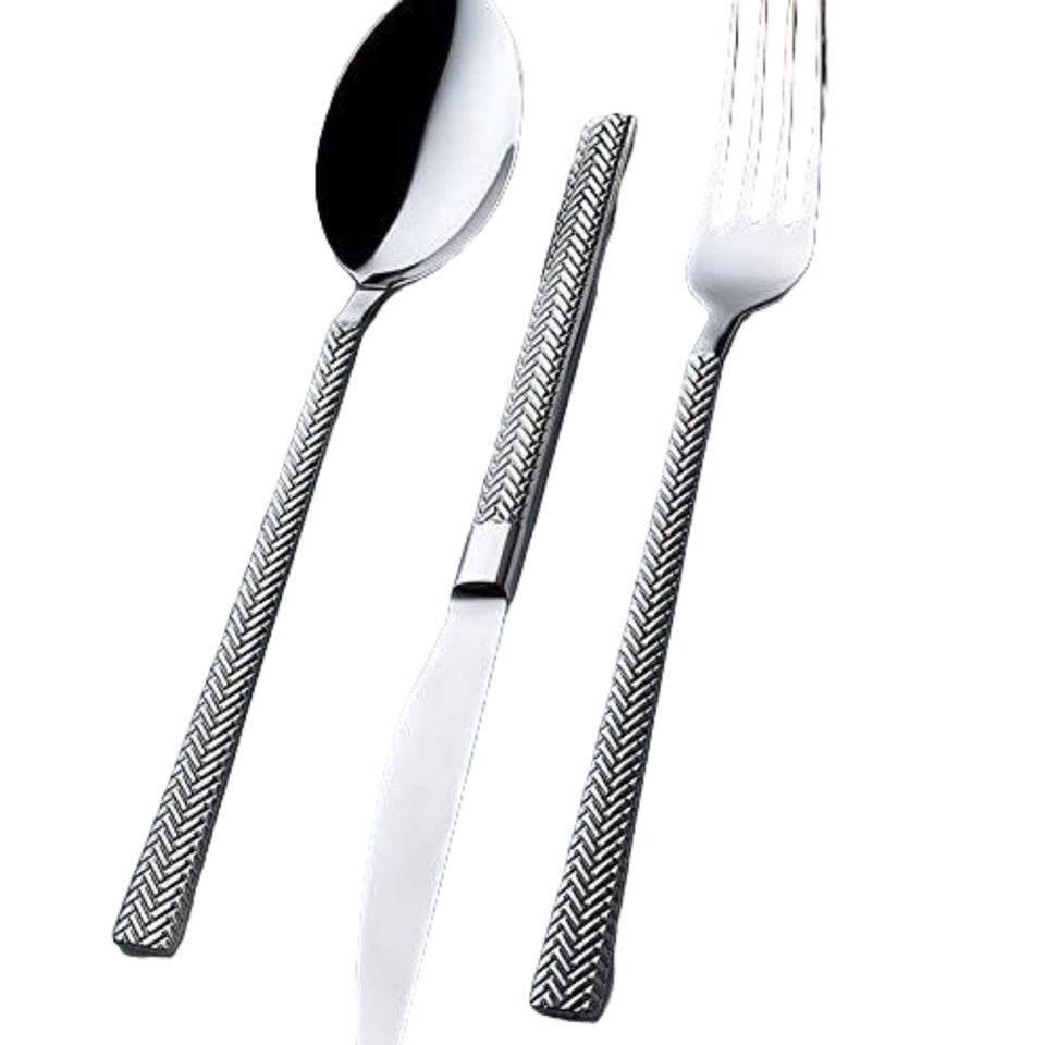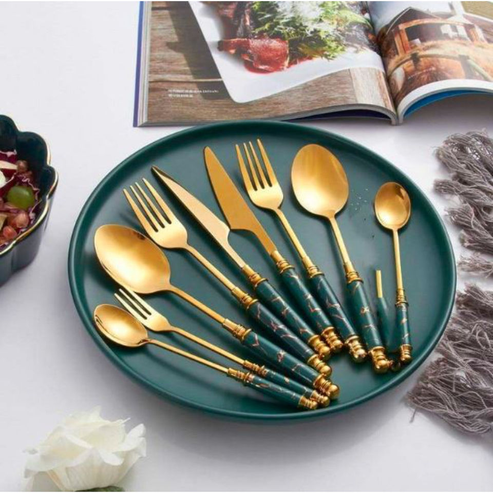 ชุดเครื่องใช้บนโต๊ะอาหารสแตนเลสชุบทอง9ชิ้นสำหรับร้านอาหารโรงแรมหรูหรารับประทานอาหารโต๊ะใช้มือจับสีเขียว