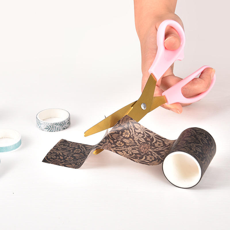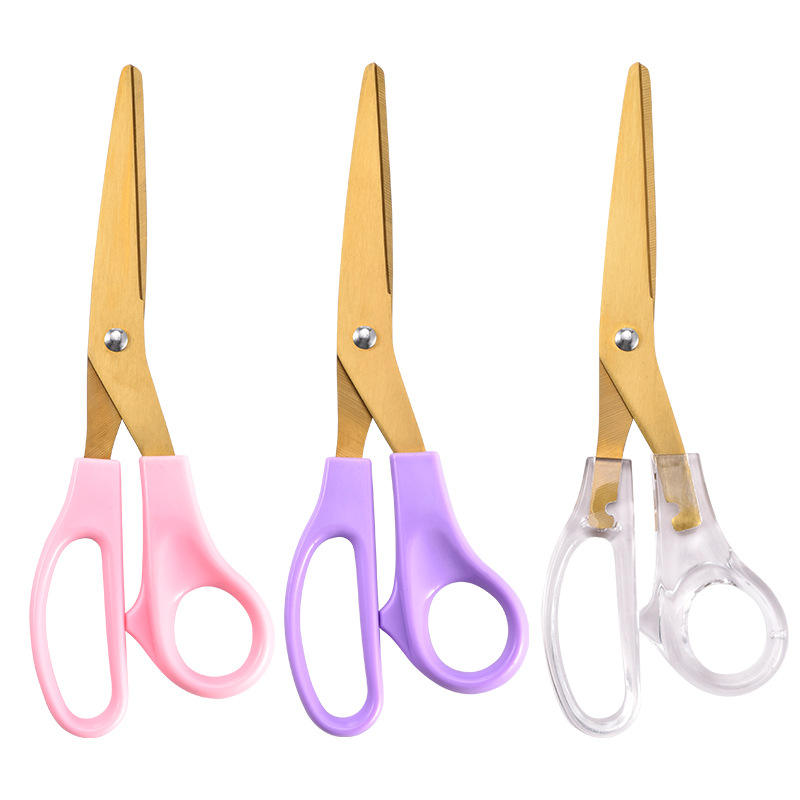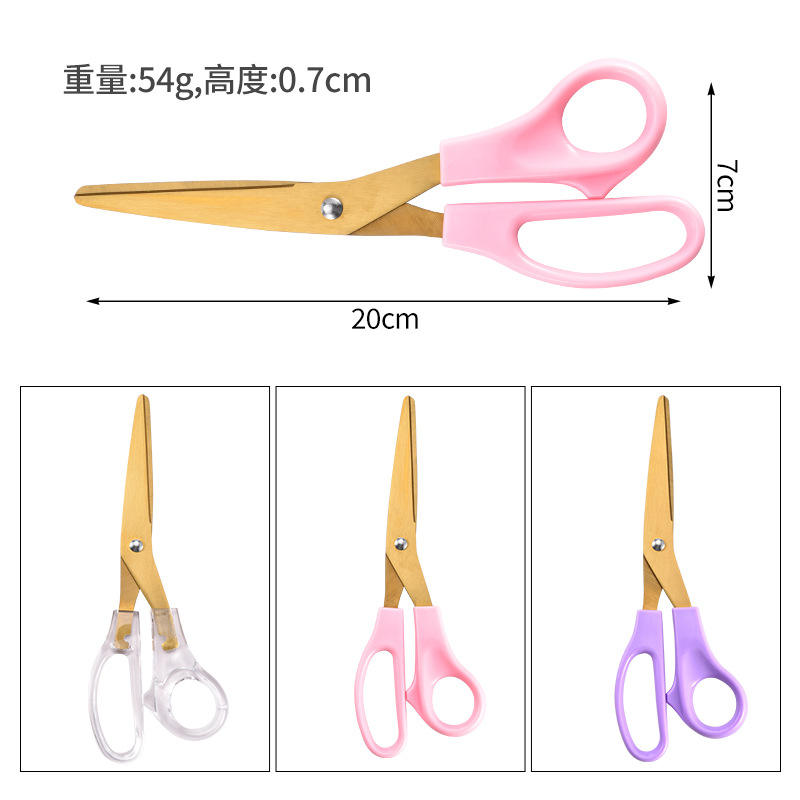 กรรไกรสแตนเลสเคลือบทอง 20.5 ซม. หัวตรงสำหรับงานตัดกระดาษงานฝีมือที่บ้าน สีชมพู สีม่วง โปร่งใส