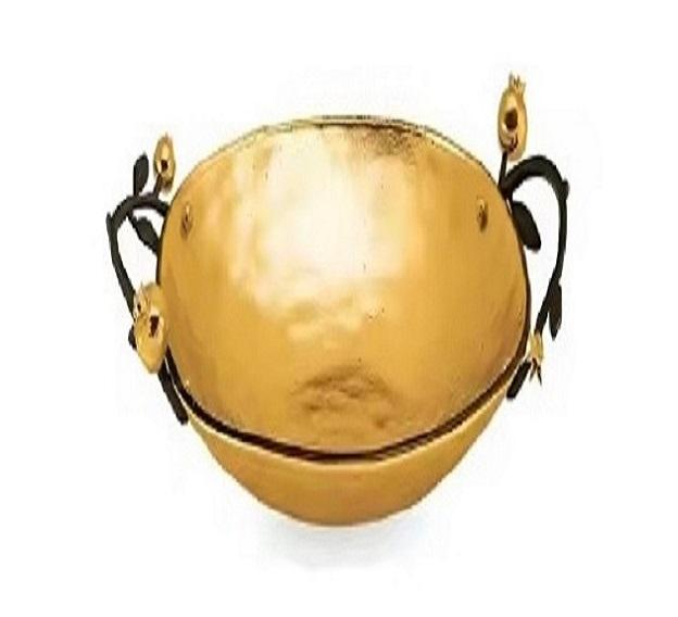 ชามเสิร์ฟสแตนเลสเคลือบทองด้ามจับทองเหลืองออกแบบสำหรับตกแต่งภายในบ้านงานแต่งงานโรงแรม