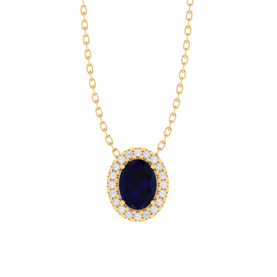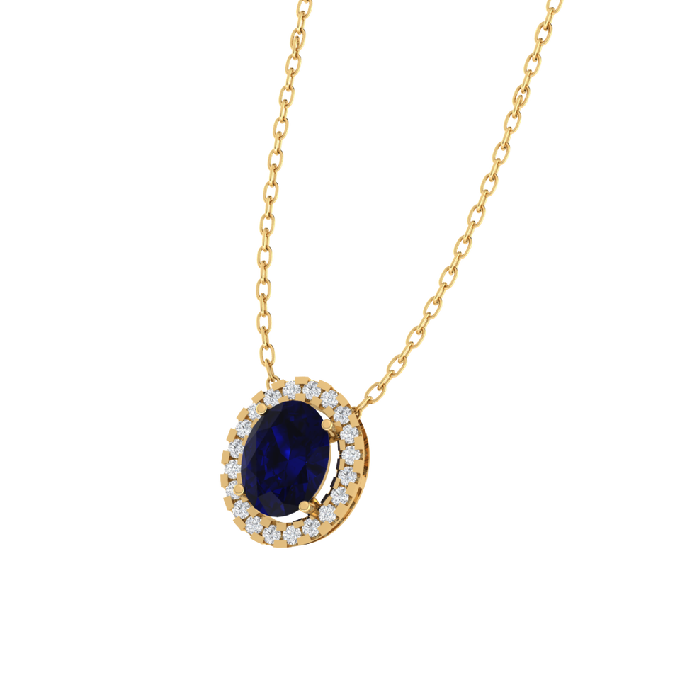 สร้อยคอเงินแท้ชุบทอง 18 นิ้ว พร้อมจี้พลอยแซฟไฟร์ทรงรีคลาสสิกและพลอยคิวบิกเซอร์โคเนีย