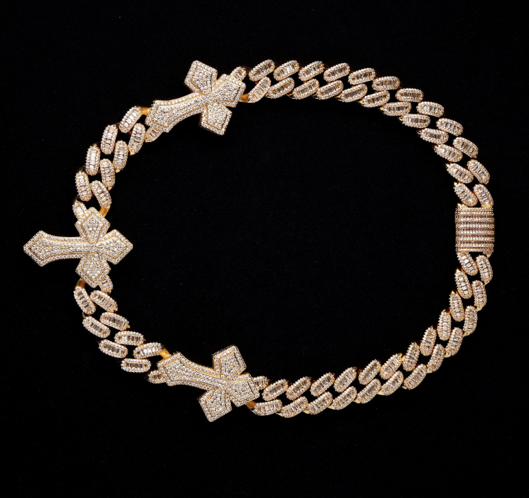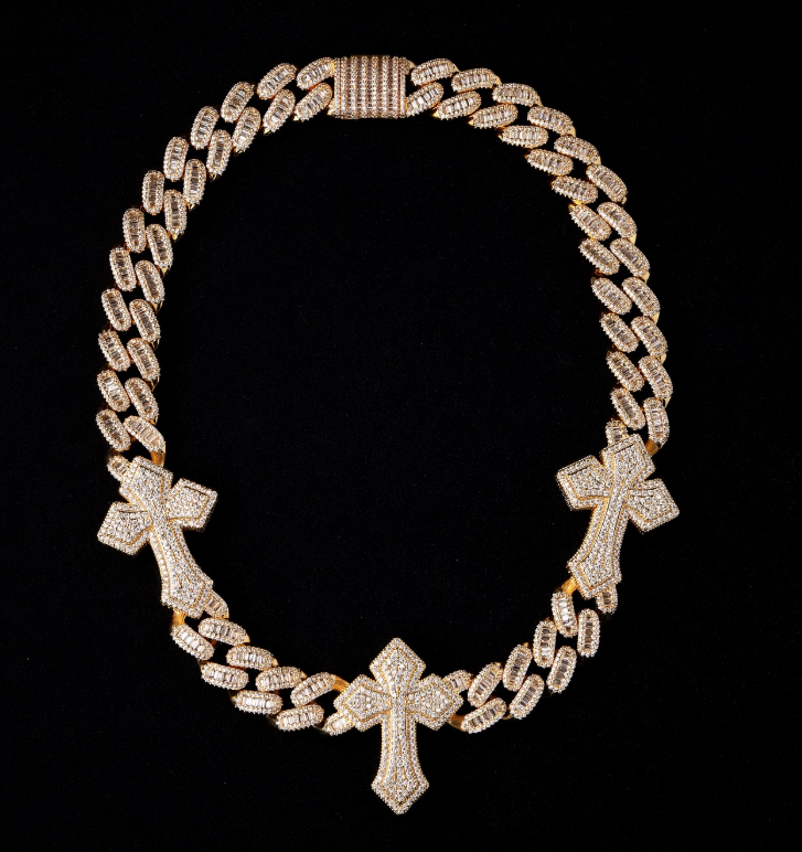 สร้อยคอเงินแท้ชุบทองประดับเพชรสำหรับผู้ชาย เครื่องประดับฮิปฮอป สร้อยคอสุดหรู