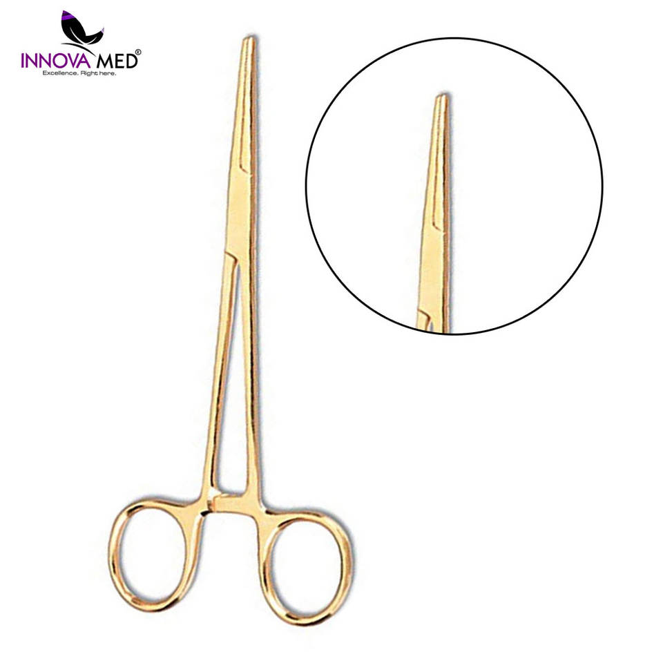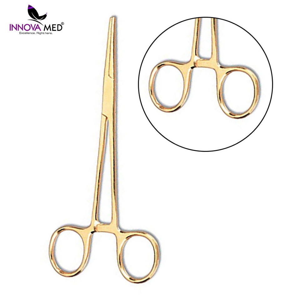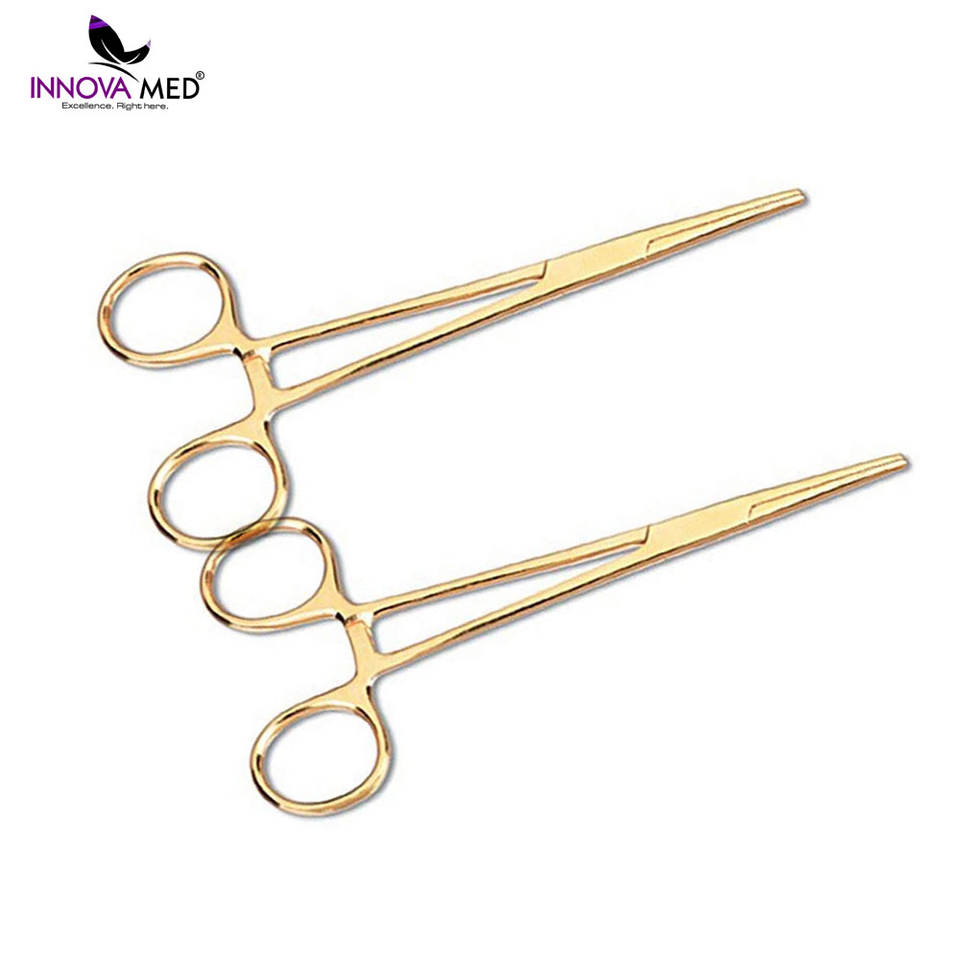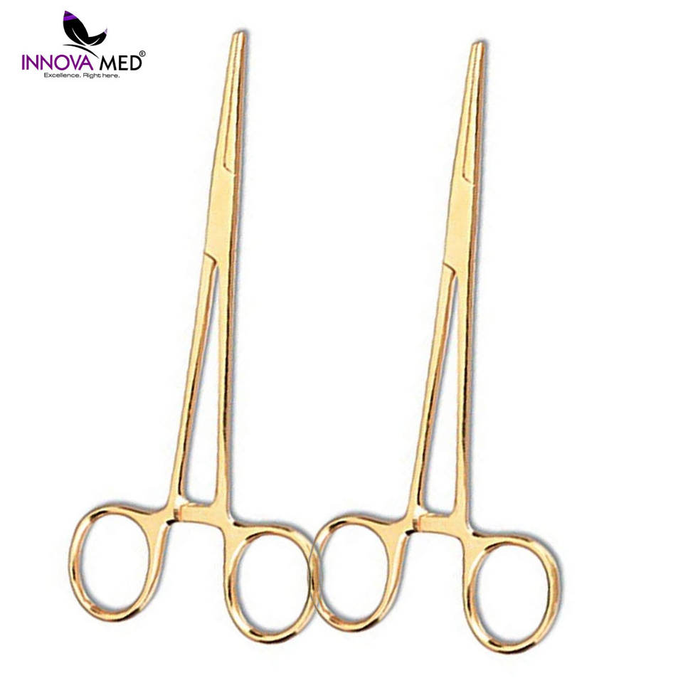 คีมผ่าตัดมือชุบทองขนาด5.5นิ้วทำจากสเตนเลสสตีลซึ่งผ่านการรับรอง CE คลาส II เครื่องมือที่มีนวัตกรรม