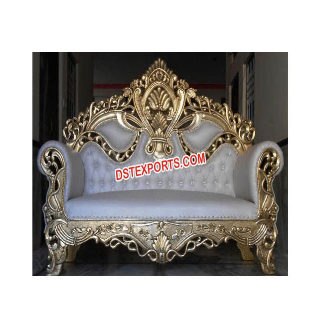 เฟอร์นิเจอร์งานแต่งงานชุบทอง โซฟาสองที่นั่งสำหรับงานแต่งงานสุดหรู ดีไซน์สง่างาม เก้าอี้สำหรับเวที