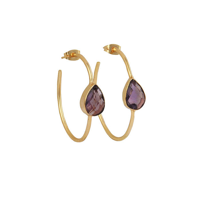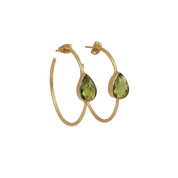 ชุบทองIOLITEต่างหูห่วงสีฟ้าแพร์อัญมณีชุดต่างหูเครื่องประดับพรรคสวมต่างหูมือDesigner Hoopเครื่องประดับ