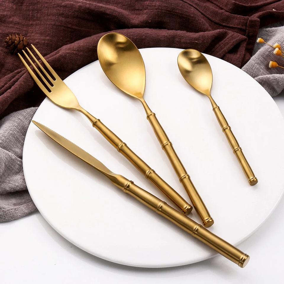 ชุดช้อนส้อมชุบทองขายส่ง ชุดช้อนส้อมทองเหลืองคุณภาพดีที่สุดสำหรับโรงแรม งานแต่งงาน งานเลี้ยง และใช้บนโต๊ะอาหาร