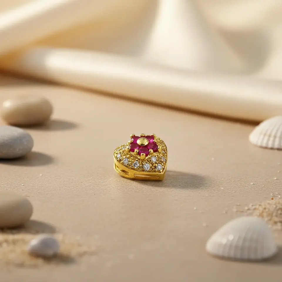 จี้รูปหัวใจประดับทับทิมชุบทองคำ พร้อมเพชรประดับ ของขวัญสำหรับเธอ จี้และชาร์มเพชร