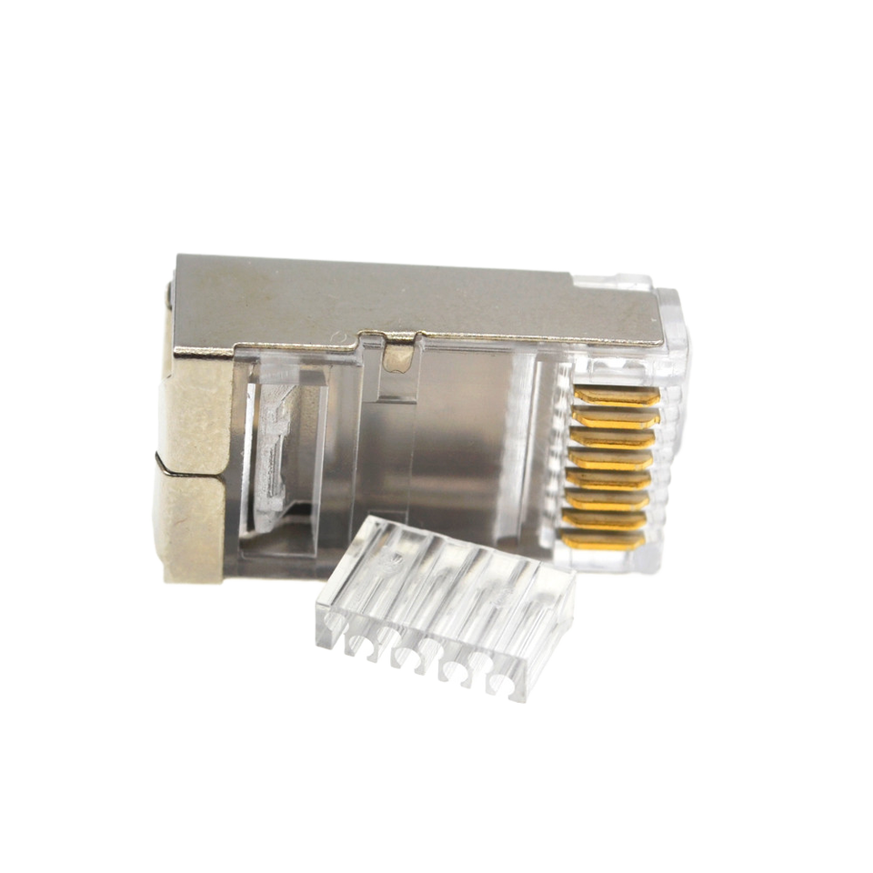 ปลั๊กสีทอง RJ45สายเคเบิลเชื่อมต่อเครือข่ายอีเธอร์เน็ตปลั๊ก T568A/T568B สาย Cat5e Cat6 Cat7ทองแดงพินเอาต์ RJ45ปลั๊กทองแดง