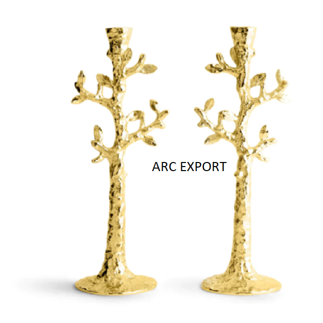 เชิงเทียนทองเหลือง9แขนขัดเงาสีทองสไตล์วินเทจเชิงเทียนสำหรับบ้านและงานแต่งงาน