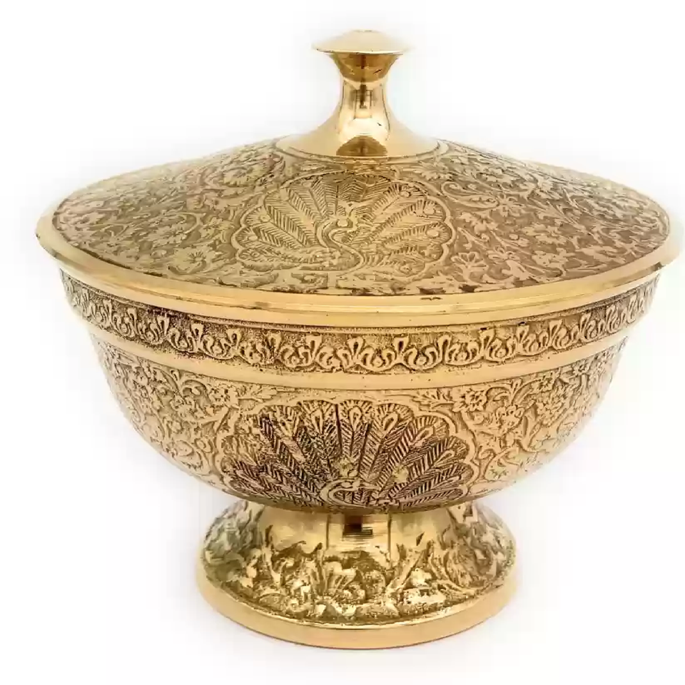 หม้อผงทองเหลืองขัดเงาทองสำหรับเก็บขนมผลไม้แห้งอุปกรณ์เสริมในครัวสำหรับห้องครัว