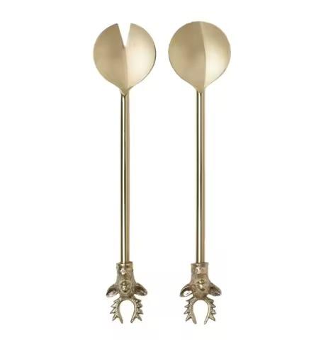 ช้อนเสิร์ฟสลัด ด้ามจับโลหะเหล็กขัดเงาสีทอง ด้ามจับตกแต่ง คุณภาพสูง