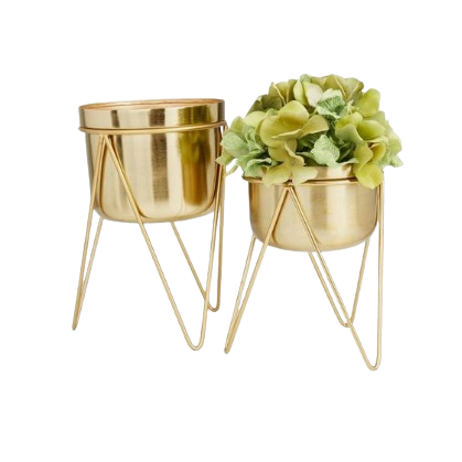 กระถางปลูกดอกไม้สำหรับตกแต่งสีทองพร้อมขาตั้งอุปกรณ์บนโต๊ะอาหารสำหรับตกแต่งบ้านและโรงแรมภาพวาดการใช้งานในห้อง