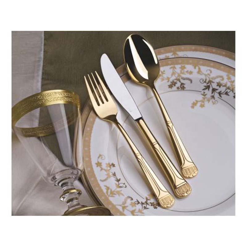 ชุดช้อนส้อมมีดสแตนเลสขัดเงาทองมีดดีไซน์แบบราชวงศ์มีด้ามจับสไตล์เกาหลีใหม่