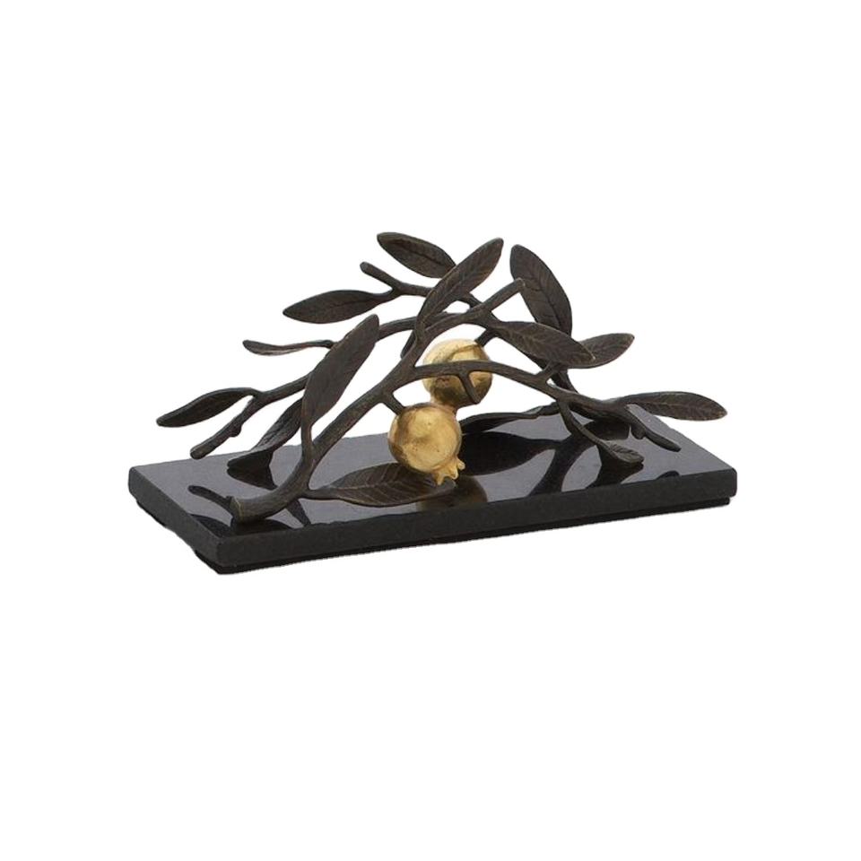 ที่วางทิชชู่ลายใบไม้และทับทิมสีทองอุปกรณ์ตกแต่งโต๊ะฐานหินอ่อนสีดำ