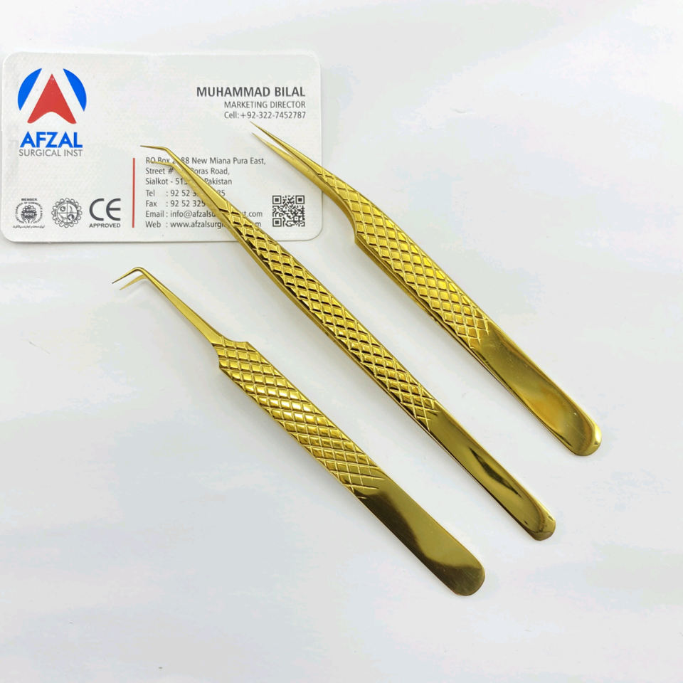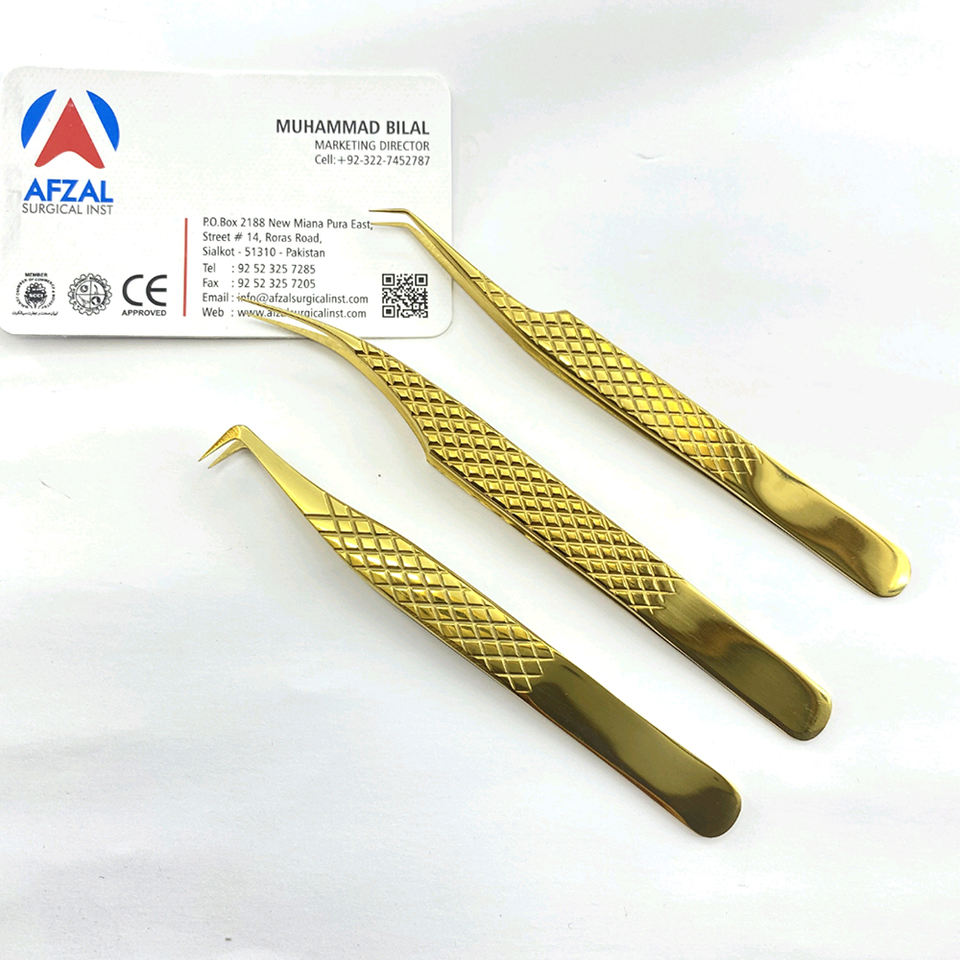 แหนบต่อขนตาสแตนเลสสตีล90องศาแบบ2025ทนทานปลายไฟเบอร์สีทองเอียง90องศา