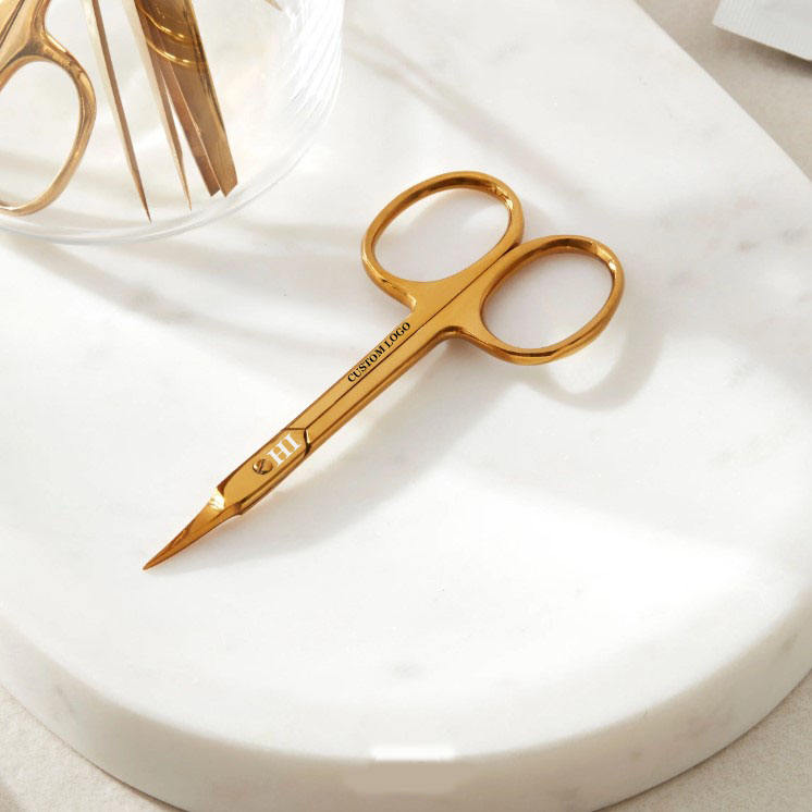 กรรไกรเล็มคิ้วแบบตรงสีทองแบบมืออาชีพกรรไกรตัดหนังกำพร้าทำจากสเตนเลสสตีลปลายแหลมแหลมตัดเล็บได้อย่างแม่นยำ