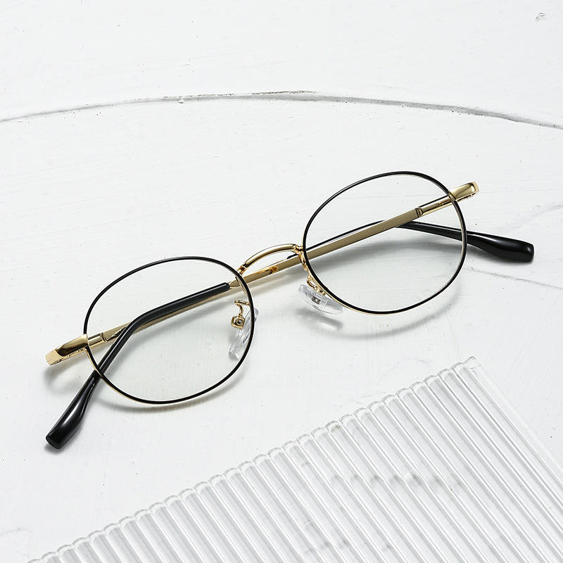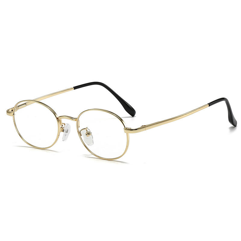 แว่นสายตาทรงรีขอบสีทองสำหรับผู้หญิง, ป้องกันแสงสีฟ้าป้องกันแสง YC8077โลหะแบบเต็มกรอบ