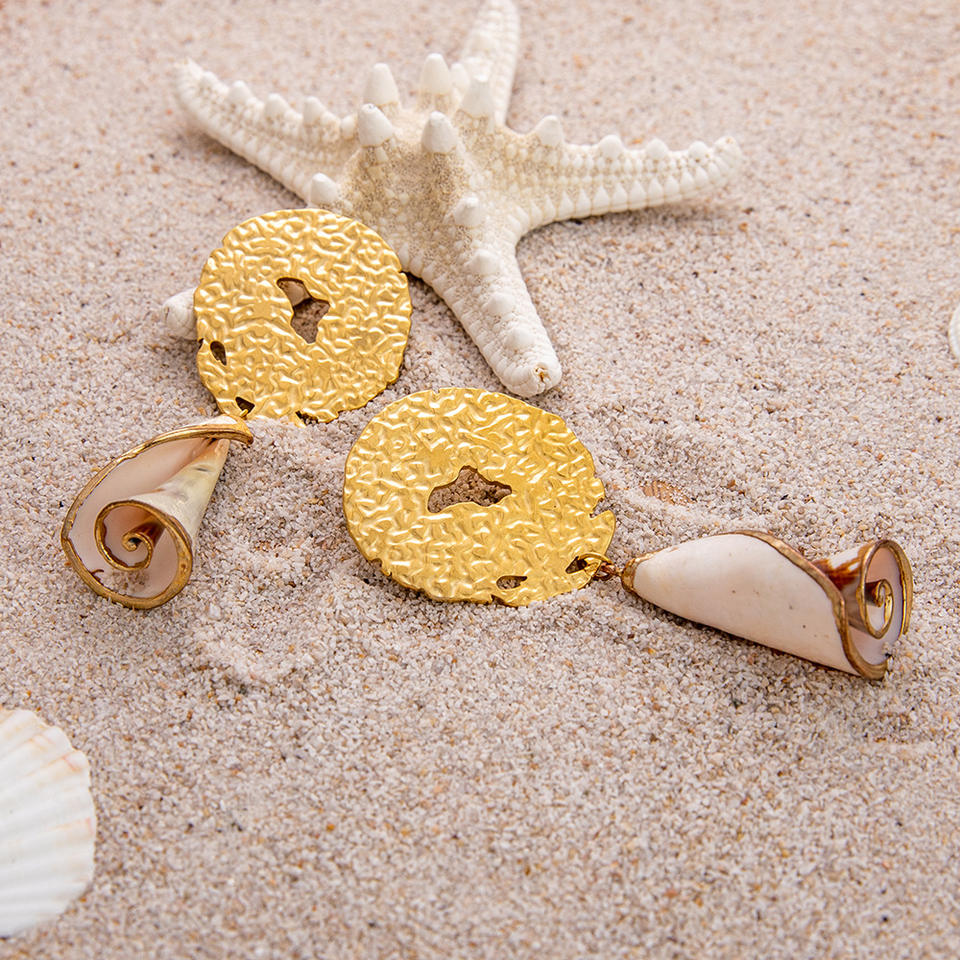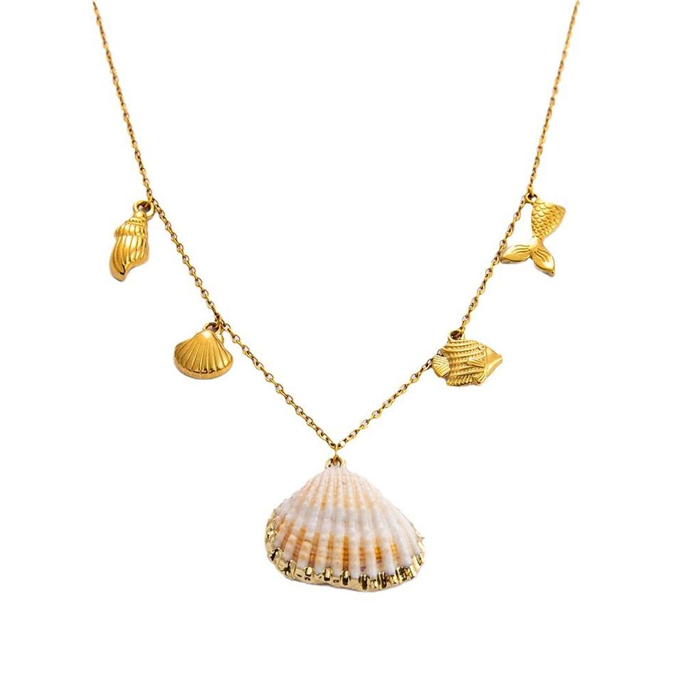 สร้อยคอเปลือกหอยขอบทอง 18K โลหะผสมสังกะสี จี้รูปหอยสังข์ ชุดเครื่องประดับธีมมหาสมุทรสำหรับฤดูร้อน