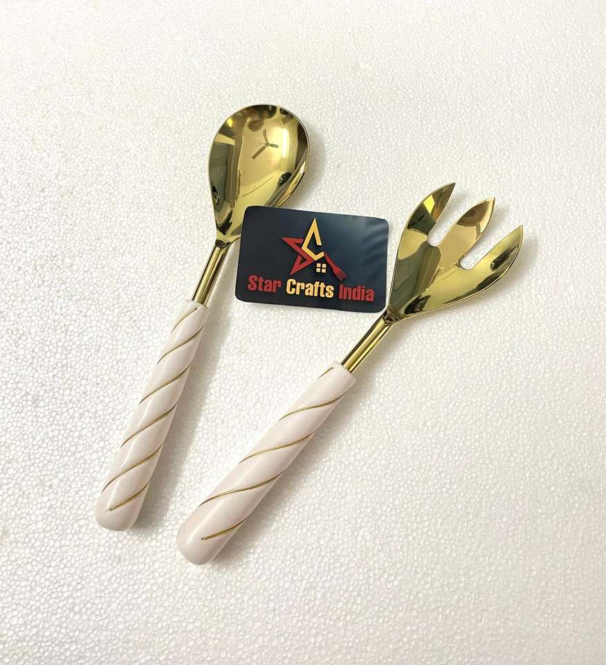 ชุดช้อนส้อมสลัดทองคำ ด้ามจับลายหินอ่อน สแตนเลสคุณภาพสูง ชุดช้อนและส้อมสลัด ชุดช้อนส้อมหรูหราสำหรับใช้ในครัว