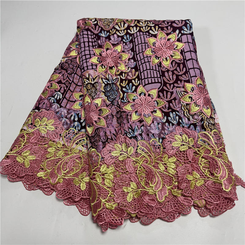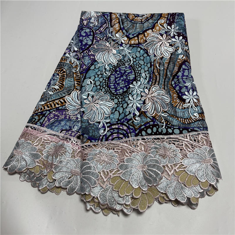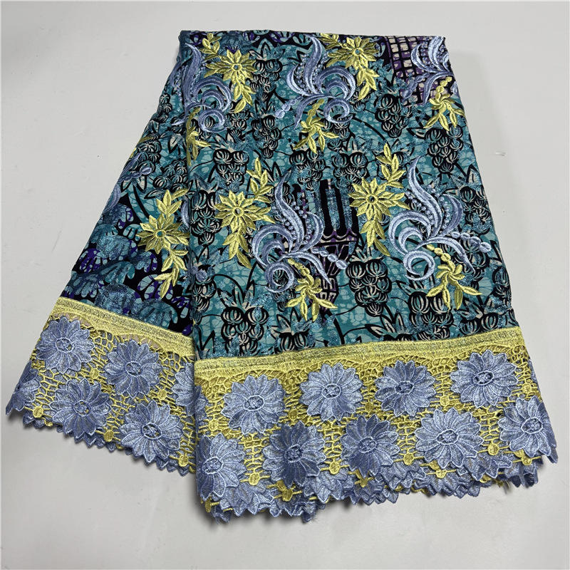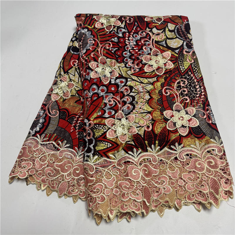 ผ้าลูกไม้ลายขี้ผึ้งปักลายดอกไม้สุดหรูสีทองแกรนด์แกรนด์แวกซ์แอฟริกัน6หลา