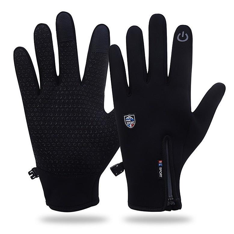 ถุงมือกันลมแบบเต็มนิ้วสีดำสำหรับขี่จักรยาน ยูนิเซ็กส์ หน้าจอสัมผัสได้ บุขนแกะ โพลีเอสเตอร์ ไซส์ M-L-XL