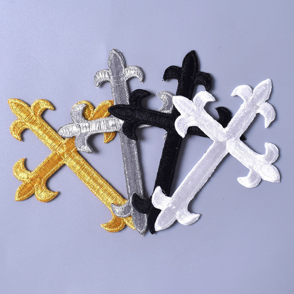 แผ่นผ้าสีทองเงินสีดำแผ่นเหล็กไขว้สำหรับติดเสื้อผ้าสติกเกอร์ตกแต่งลายร็อคพังค์ลูกไม้ทำจากผ้าใบที่มีฝาปิดทำจากเรซิน