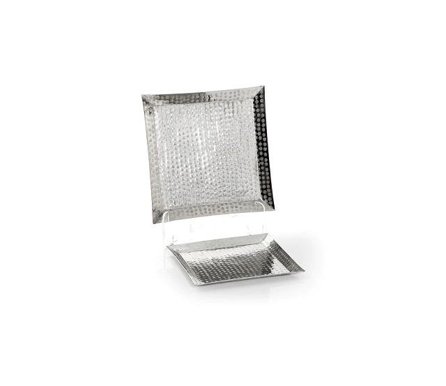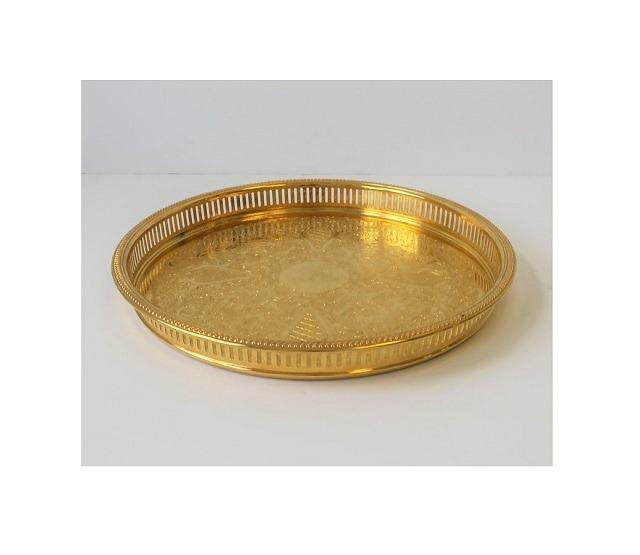 ถาดรองอาหารโลหะสแตนเลสสีเงินทองสำหรับบ้านในชนบทถาดพิซซ่าทรงกลมถาดสำหรับเสิร์ฟอาหารสำหรับร้านอาหารจานอาหารค่ำ
