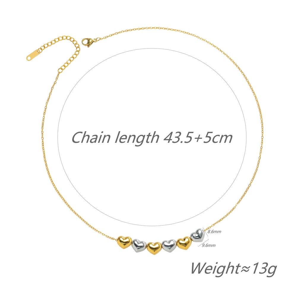 สร้อยคอสแตนเลสชุบทอง 18K สีเงินสองสี รูปหัวใจ 3 มิติ สายโซ่เส้นเล็ก ดีไซน์หรูหราเบาๆ แฟชั่นสำหรับใส่ในชีวิตประจำวัน