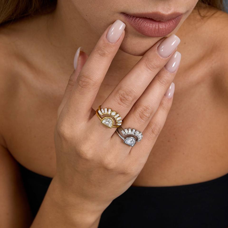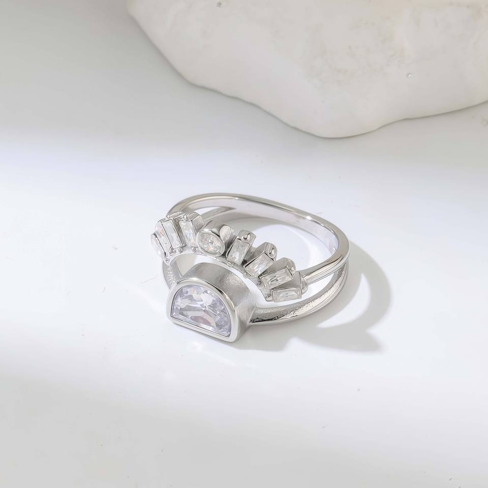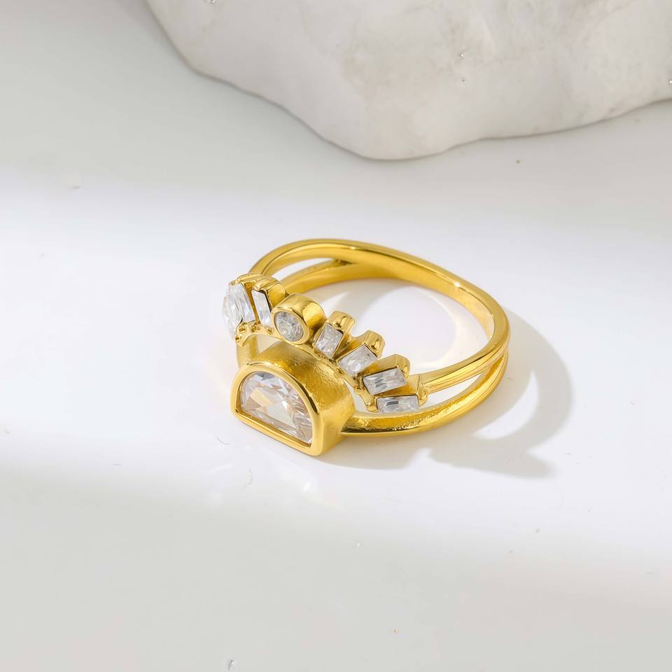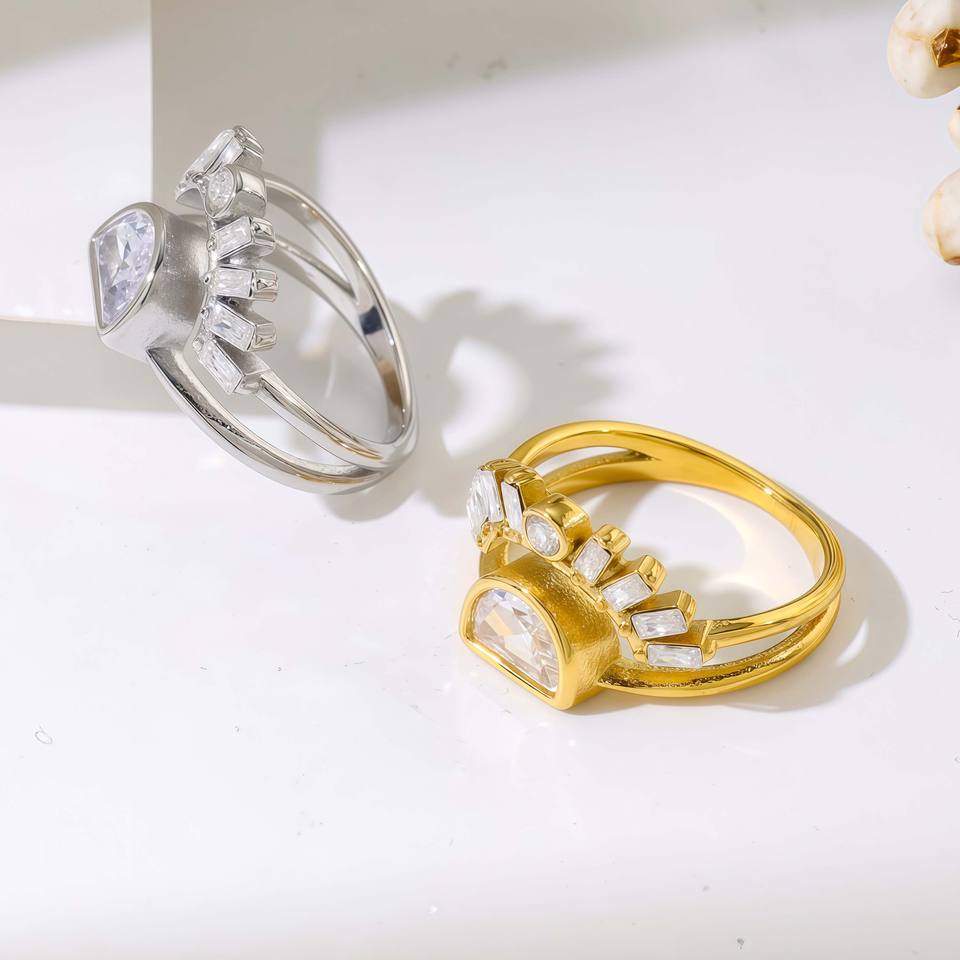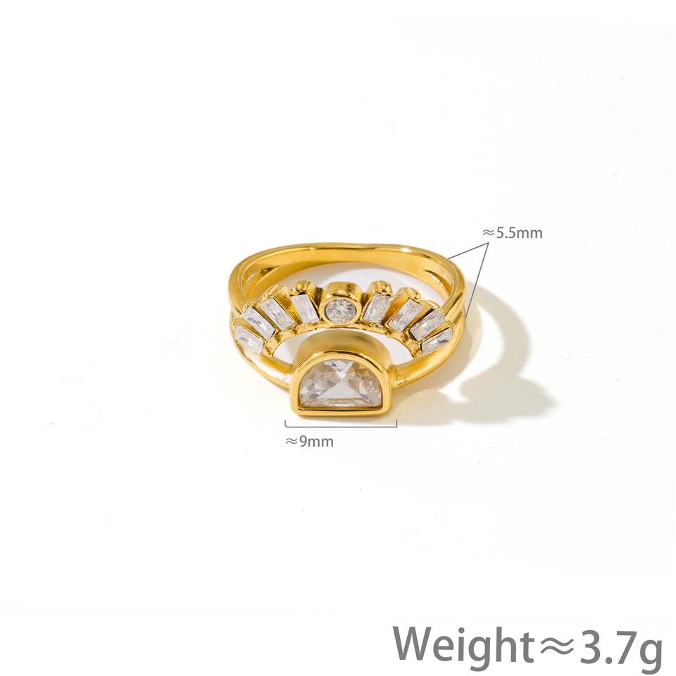 แหวนสแตนเลสสตีลสองสี ทองและเงิน ประดับเพชรซิร์คอนรูปพระอาทิตย์และพระจันทร์ ดีไซน์หรูหราแบบเรโทร เหมาะสำหรับใส่ในชีวิตประจำวัน
