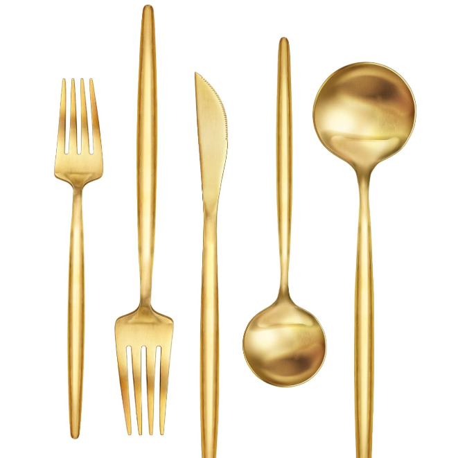 ชุดช้อนส้อมพลาสติกสีเงินสำหรับ 5 คน ประกอบด้วยช้อน ส้อม มีด เหมาะสำหรับเป็นของขวัญทางธุรกิจ