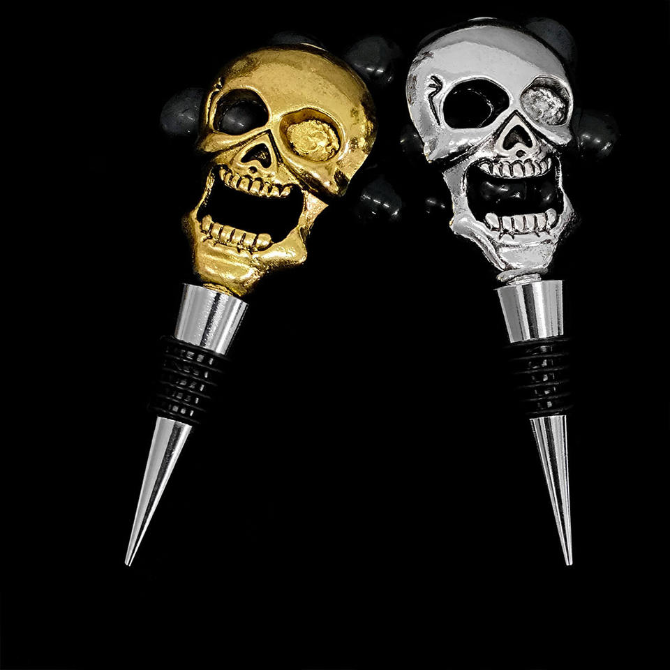 ชุดภาชนะซิลิโคนรูปหัวกะโหลกสีทองมีช่องใส่แก้วไวน์แดงและฝาน้ำมันมีตาเดียวพร้อมภาชนะ