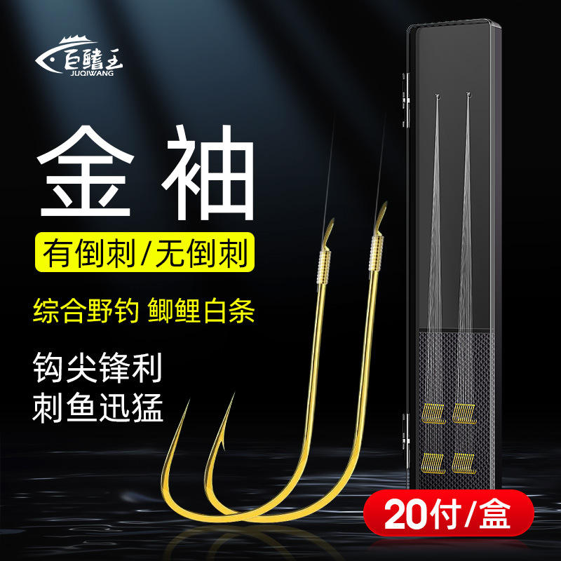 ชุดเบ็ดตกปลาแบบไม่มีเงี่ยงเคลือบทอง สำหรับตกปลาในน้ำจืด ป้องกันการพันกัน สายสั้น ผลิตจากเหล็กคาร์บอนสูง ทนทาน