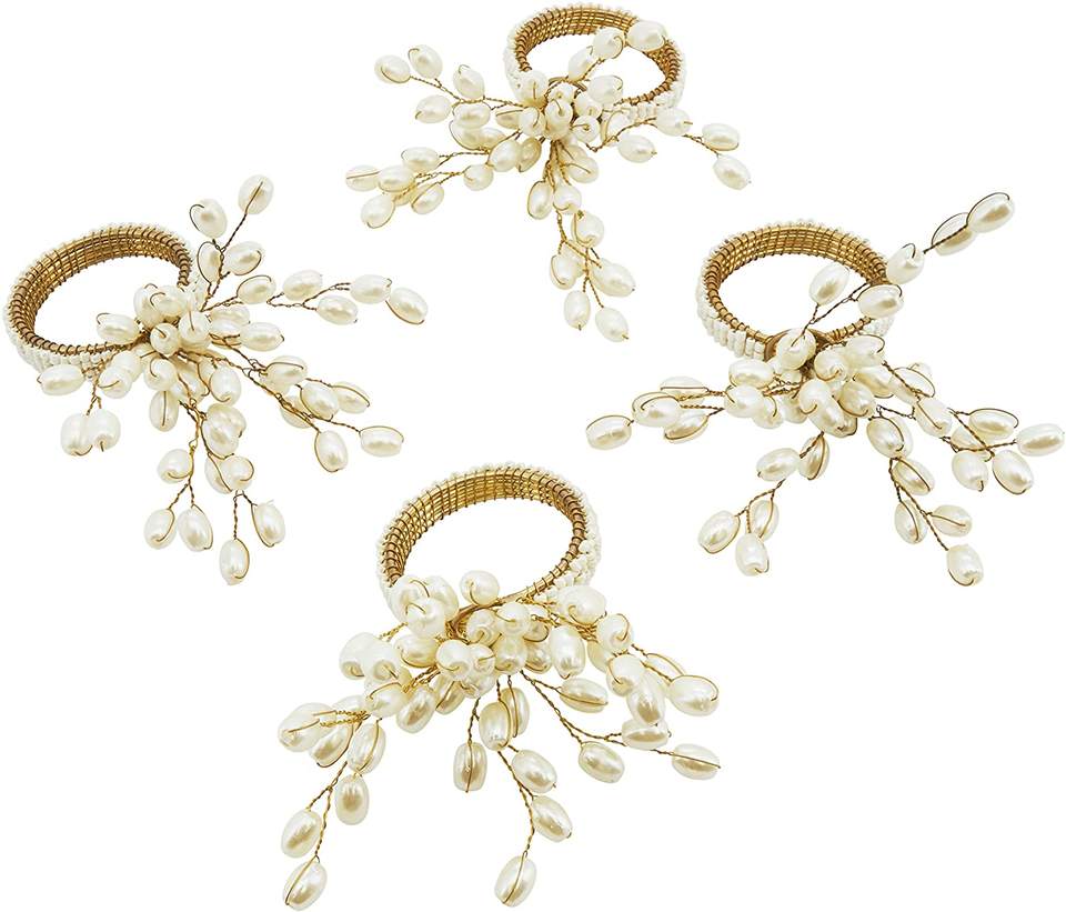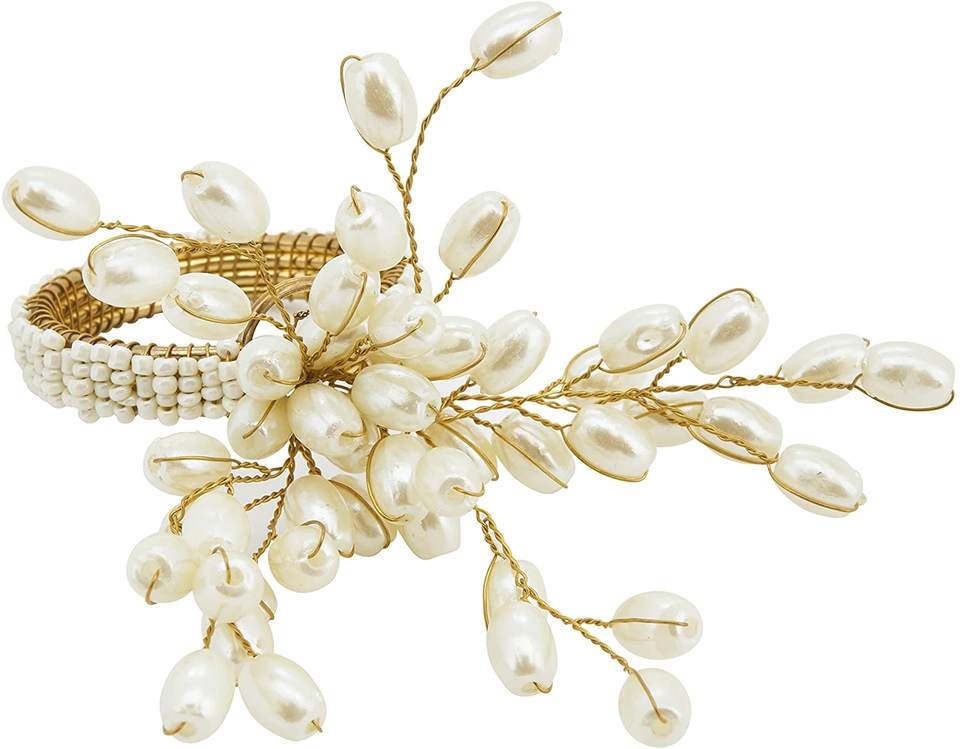 แหวนรัดผ้าเช็ดปากประดับไข่มุกแท้เกลียวทอง