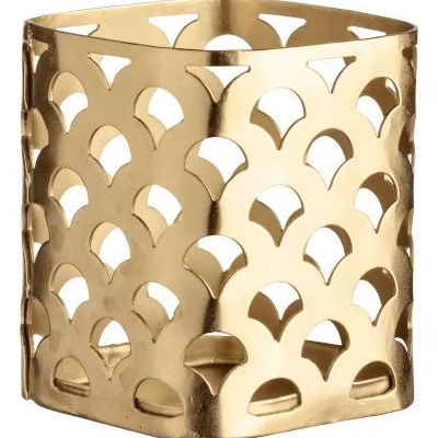 เชิงเทียนทรงสี่เหลี่ยมสีทอง ดีไซน์โค้งเว้าอย่างมีสไตล์ โคมไฟโลหะแบบวอทีฟ ตกแต่งบ้านสไตล์โมเดิร์น ให้แสงสว่างสวยงาม