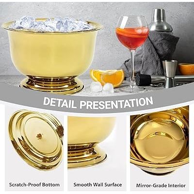 ถังแช่เครื่องดื่มสแตนเลสสีทอง 8 ลิตร ความจุขนาดใหญ่ เก็บความเย็นสำหรับแชมเปญและไวน์ เหมาะสำหรับงานปาร์ตี้ กิจกรรมต่างๆ และใช้ในบ้าน